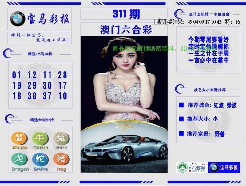 | 311期高手六肖「牛龙鼠马猴蛇」 |